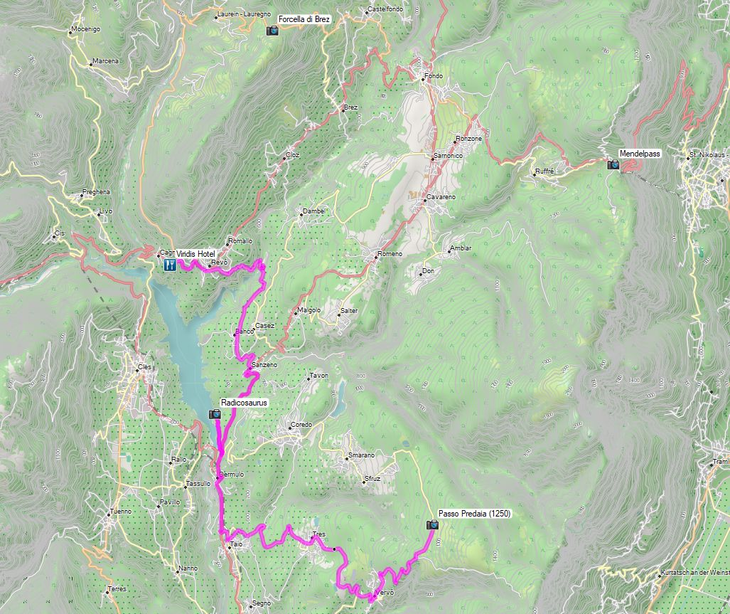 Apropos anfahren. Aus Richtung Bozen kommend können wir über den Mendelpass anfahren. Diejenigen die aus dem Vinschgau oder der Region Meran kommen, die fahren über den Gampenpass oder rollen über das Ultental und die Hofmahd mit der angrenzenden Forcella di Brez an. Aus Richtung Westen bietet sich der Passo Tonale an.