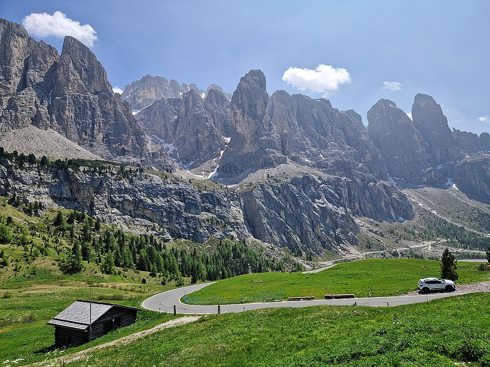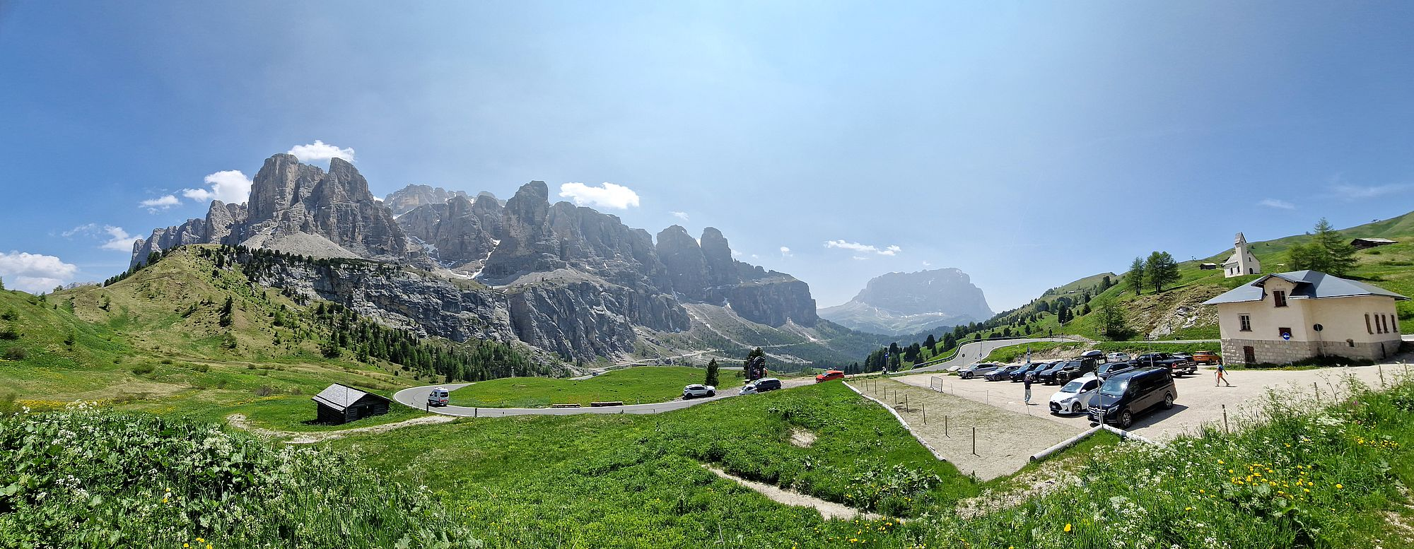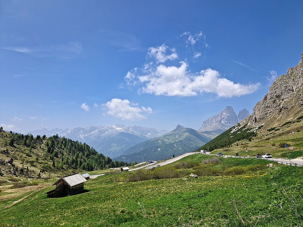 Hinter Canazei fangen wir dann, mit dem Passo Pordoi, unser heutiges Quartett rund um den Sellastock an.