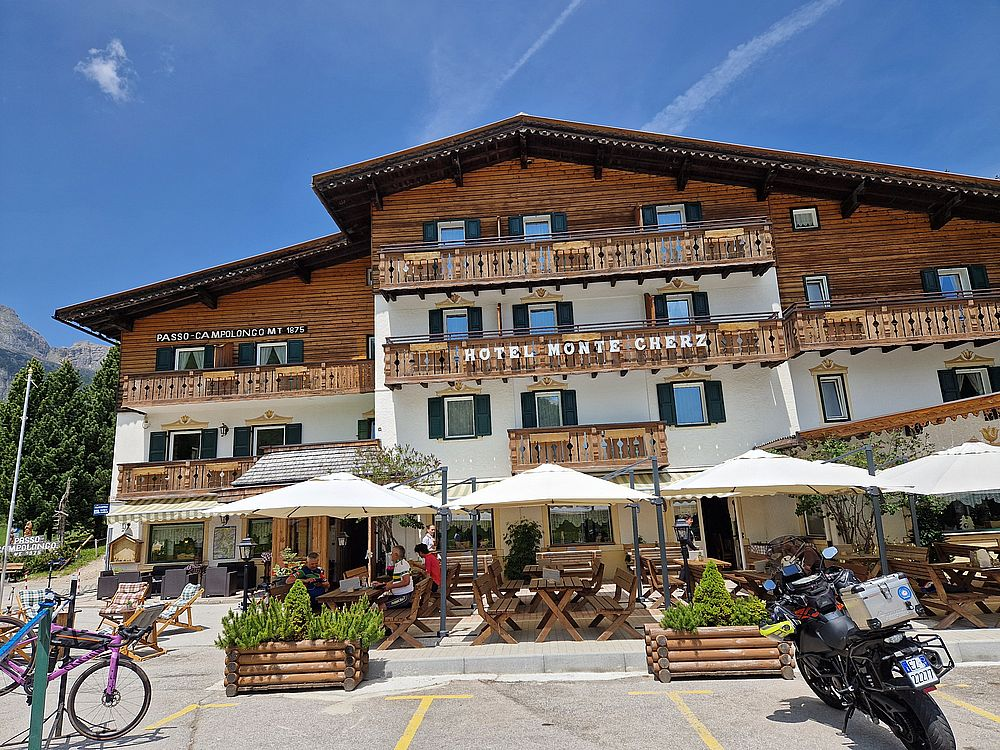 Wenn man, wie wir, die heutige kurze Schleife fahren möchte, dann nutzt man ihn um Pordoi und Grödnerjoch miteinander zu verbinden. Wer mehr Zeit für die Runde mitbringt, der sollte den ostwärts gelegenen Valparolapass nutzen. Was wir auch am Campolongo erledigen ist unsere Aufnahme der Verpflegung. Die Pasta Ragu di Cervo sind lecker und füllen unsere Kohlenhydratespeicher umgehend wieder auf.