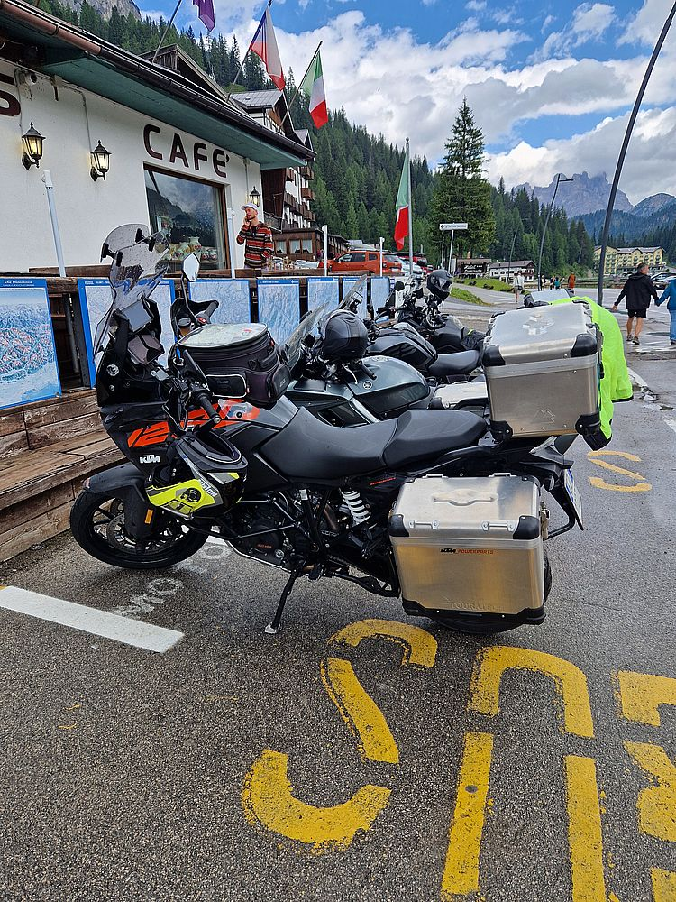 Wir anderen fahren zurück nach Toblach und genießen auf einer der vielen Terrassen einen Aperol Spritz. Schön war es und es hat uns gezeigt, dass es nicht immer hunderte von Kilometern sein müssen um einen erfüllenden Motorradtag zu haben.