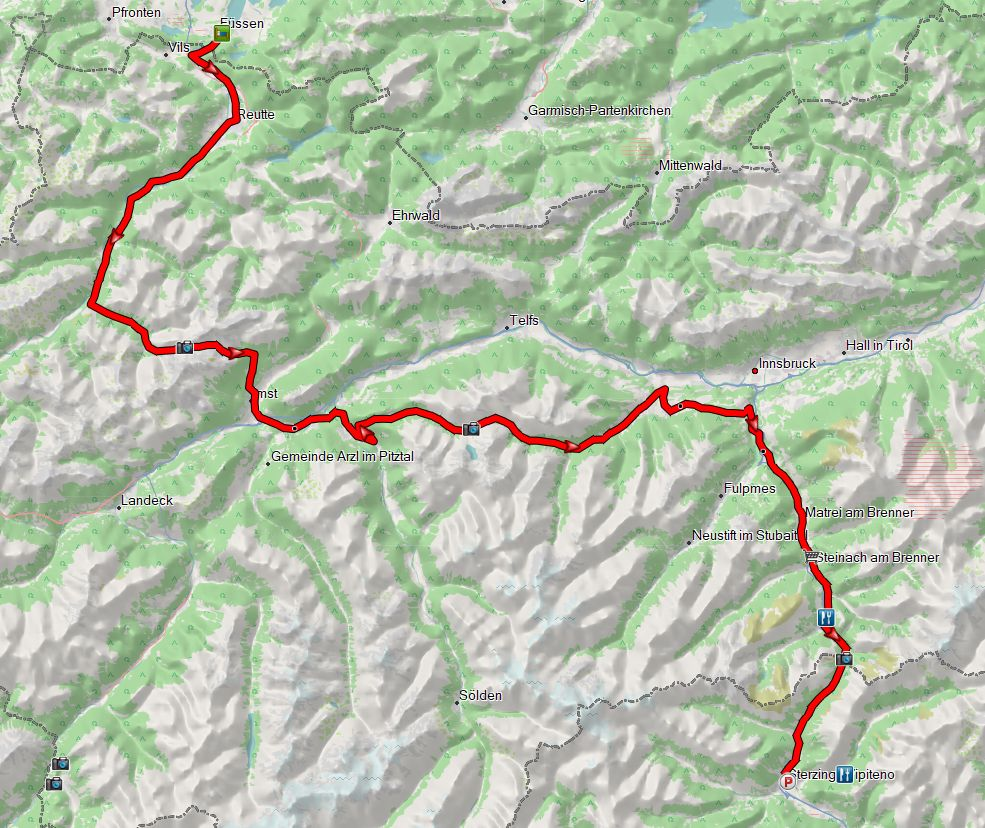 Bis in die Tiroler Landeshauptstadt Innsbruck zieht es uns natürlich nicht. Über Axams und Götzens geht es auf die B 182, namentlich die alte Brennerstraße und dann hinein in das gelobte Land Südtirol.