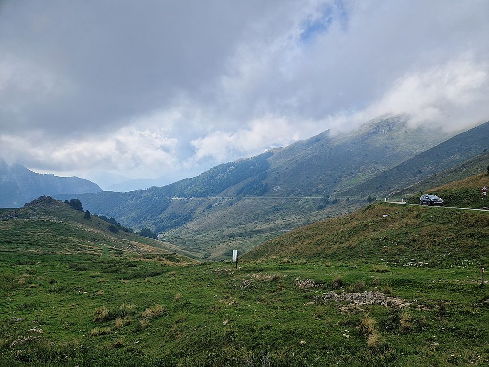 Von der Passhöhe aus haben wir dann leider eine Begrenzung von 60 km/h, was der Aussicht und den Kurven aber keinen Abbruch tut.