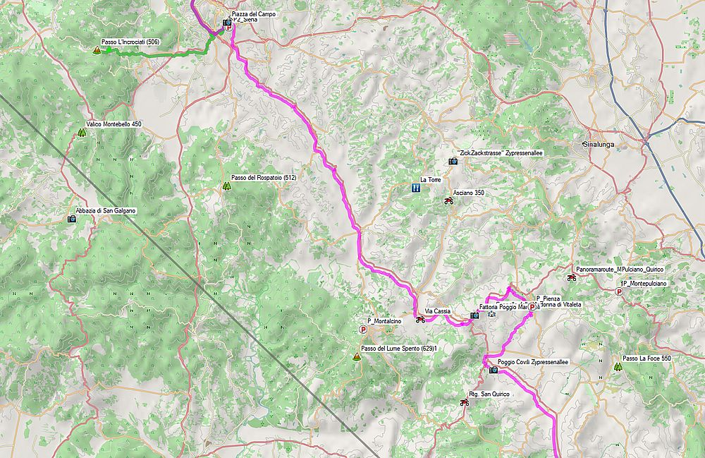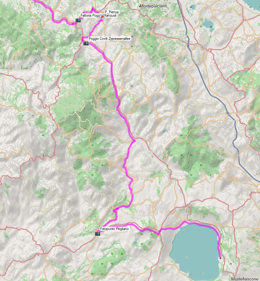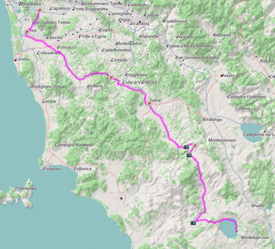 300 km waren es quer durch die Toskana. Ideal als Transferstrecke und für den, der mehr Zeit mitbringt, ebenfalls ideal für die vielen versteckten interessanten Punkte, welche die Toskana noch verbirgt.