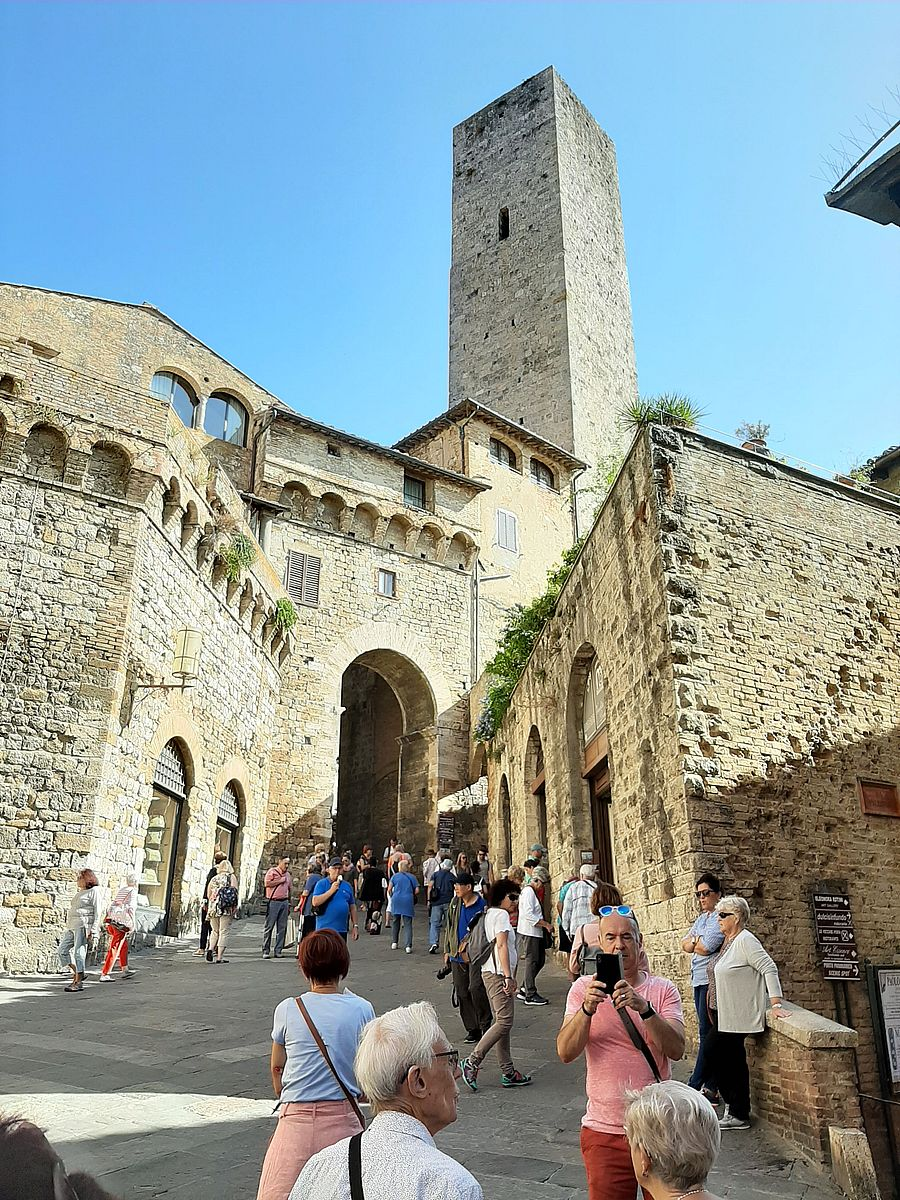 Aber wir sind ja nur auf Durchreise. Also weiter auf unserem Weg zum nächsten Höhepunkt, den man auf unserer Route bereits von weitem erkennt. Auf nach San Gimignano der Stadt mit den weltbekannten Geschlechtertürmen.