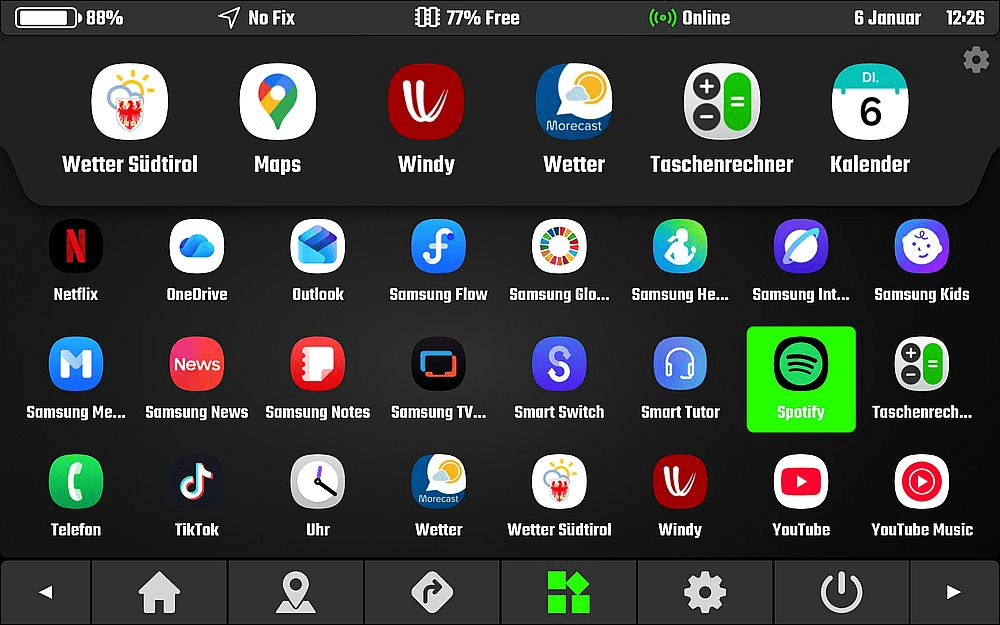 Interessiert mich unterwegs die aktuelle Wetterlage? Dann setze ich in eines der Fenster eine Wetter-App und kann während der Navigation nachschauen wie sich voraus das Wetter entwickelt. Ich finde diese Möglichkeiten ausgesprochen praktisch.