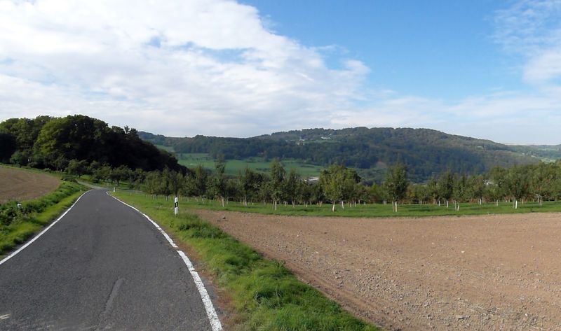 Der Rest von uns verbleibt auf der „deutschen Seite“ und rollt über die L 1 bis Bollendorf. Dort der „abknickenden Vorfahrt“ folgen und nach ca. 200 m links ab in die Wallendorfer Straße. Es geht bergan und in schönen Kurven folgen wir dem Streckenverlauf der L 1 über Körperich nach Obersgegen. Wir sind jetzt im „Naturpark Südeifel“ unterwegs. Wie immer bei unseren Touren „viel Landschaft“.