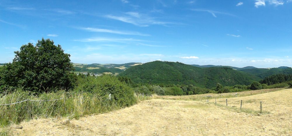 Von dort rollen wir direkt quer über die B 412 auf die K 3 in Richtung Siebenbach. Im weiteren Verlauf der K 3 in Richtung der Ortschaft Acht und hier in der Ortslage nach links abbiegen auf die K 11 nach Langenfeld. Hier im Ort, an der ersten größeren Kreuzung nach rechts abbiegen und am Ortsende führt uns unser Weg erneut linksabbiegend auf die K 14 talabwärts. Abwärts im wahrsten Sinne des Wortes, denn die Streckenführung durch den Wald führt in engen Serpentinen derart nach unten, dass man am Ende den Zugang zum Hades vermutet. Stattdessen zeigt uns, unten angekommen, ein fast nicht zu übersehendes Hinweisschild den Weg zu unserem Ziel nach Links – auf nach Langscheid und hier zur Wacholderhütte. Ein wunderbar ruhig gelegenes Plätzchen zum Pausieren und zur Verpflegungsaufnahme bei einer tollen Aussicht.