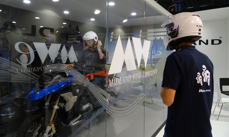 Beide Geräte sind dabei mit der DSP-Geräuschunterdrückung versehen. Apropos Geräuschunterdrückung. Flying Haggis konnte sich im Windkanal davon überzeugen, dass die von Midland neu konzipierte „Wind Experience“ wirklich erstaunlich gut funktioniert. Wir wollen ja alle unsere Motoren hören und haben auch nichts gegen den Fahrtwind auf der Strecke. Ganz im Gegenteil. Sobald es aber um Kommunikation geht ist all dies ausgesprochen störend und nervig. Jetzt kommt es auf Klangqualität an und gut zu verstehende Ansagen unserer Dame aus dem Navi oder unserer Begleitung. Bei der kompletten BT-Pro-Serie hat Midland jetzt diese „Wind Experience“ verbaut. Bis zu 80 % der Windgeräusche werden dabei unterdrückt. Aus meiner Sicht DER Weg in die richtige Richtung bei Kommunikationssystemen und der Schritt weg vom nächsten Tinnitus, den kein Mensch braucht.