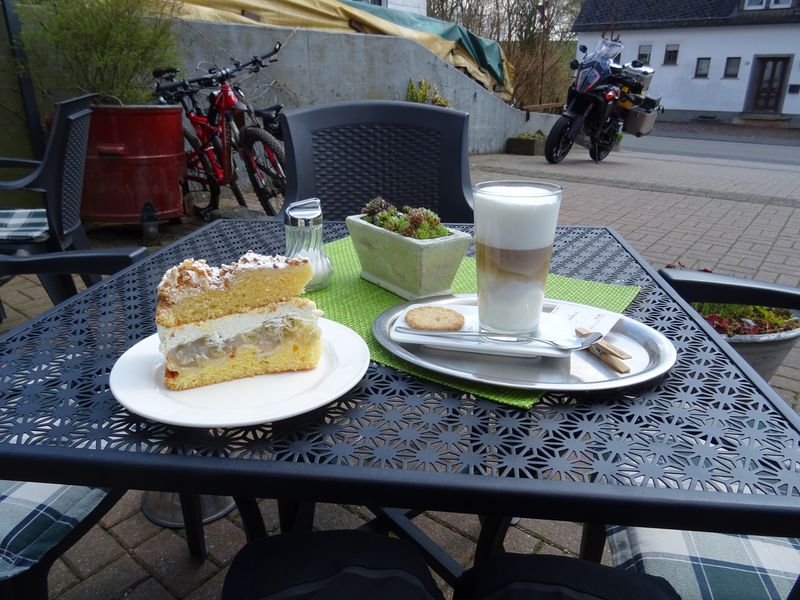 Haggis du bist ja n richtiger cafe racer. Hab ich richtig gezählt, zweimal Kuchen fassen und Kaffee tanken? Kann es sein, daß die Fastenzeit dazu geführt hat, daß die Moppedhosen rutschen?