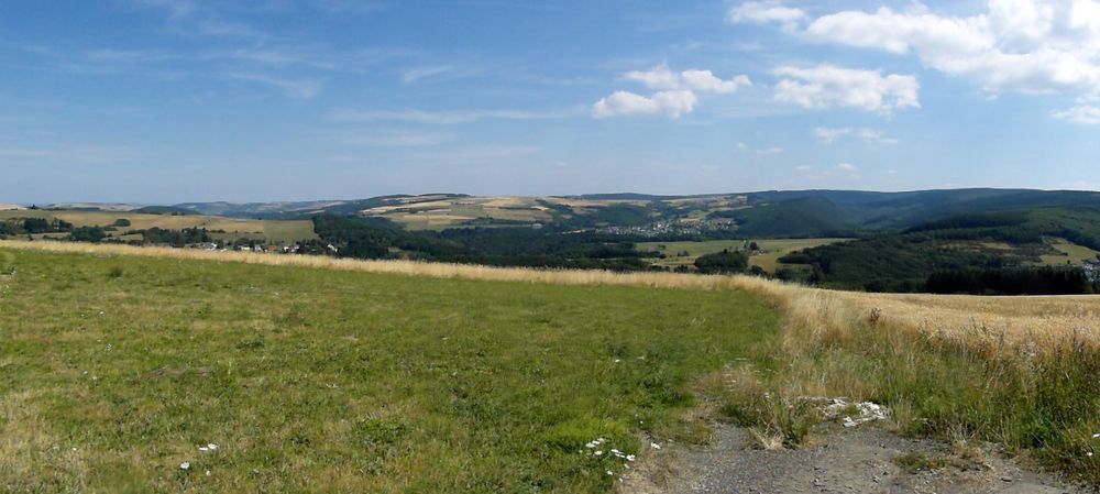 Bei Pluwigerhammer biegen wir rechts ab auf die K 45 in Richtung Ollmuth und genießen die schöne Aussicht auf die Höhen des Hochwaldes. Der Blick hat schon etwas von Schwarzwaldambiente, also können wir uns den Anfahrtsweg nach Baden-Württemberg sparen.
