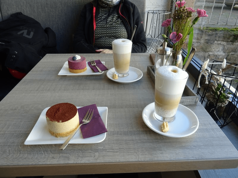Klein und gemütlich ist unsere Pausenstation und mit viel Liebe hergerichtet. Apropos Liebe. Die kleine Törtchen sind ein Genuss und so haben wir eine gute Möglichkeit aus einer Torte auch mal gerne zwei oder drei zu machen. Oder im Tankrucksack bzw. Koffer ist noch Platz für den Snack zwischendurch bei einem nächsten Fotohalt.