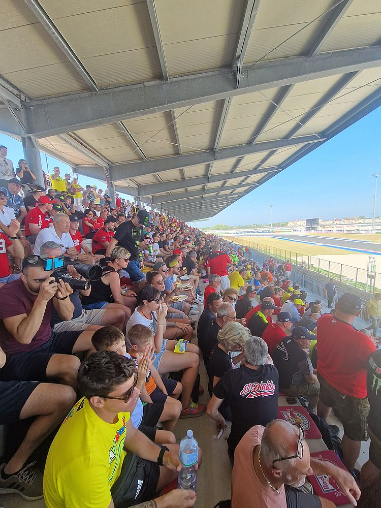 Tribünen A, B, C schön überdacht und bei Sitzreihe relativ mittig genießt man bei angenehmen Temperaturen das Training und die Rennen.