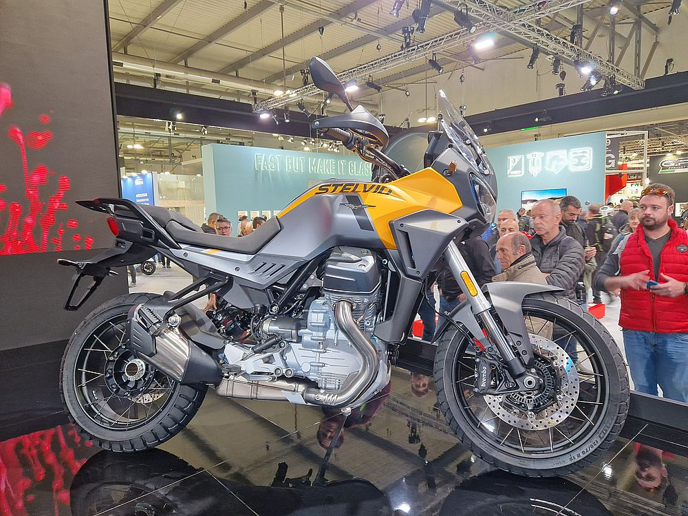 So gefällt mir die Moto Guzzi Mandello. Ich finde diese Maschine ausgesprochen gelungen und die Freude war bei mir groß, dass die Adler aus Mandello diesen schönen Tourermotor aus der Mandello in eine neue Variante der Stelvio gebaut haben. Großartig – einfach fein gemacht und strotzt schon auf dem Messestand vor Selbstbewusstsein.