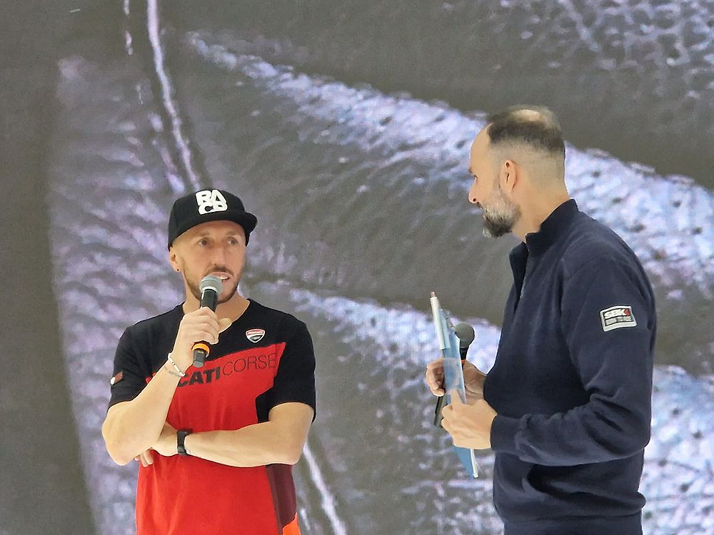 Die Roten aus Borgo Panigale steigen jetzt auch in der Cross-Szene ein. Unter dem Jubel des Publikums auf dem Messestand gab Tony Cairoli, mehrfacher Cross-Weltmeister und jetzt Ducatipilot in der nationalen Meisterschaft, seine Statements ab.