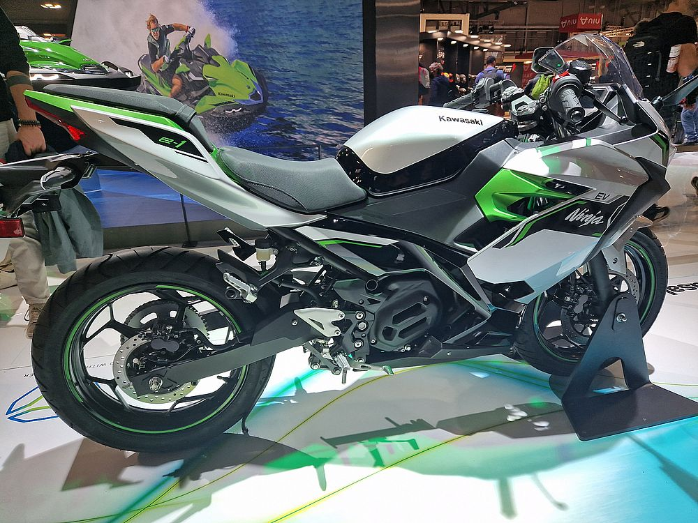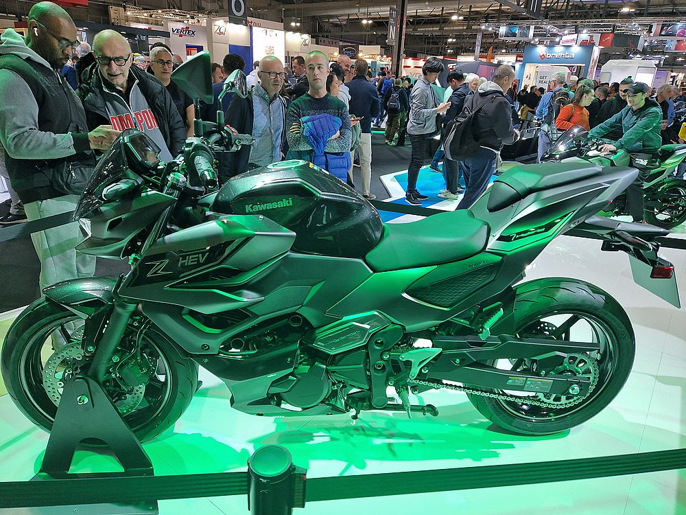 Hybrid kann Kawasaki auch und zeigt es auch stolz auf der Messe. Die alte 400er hat man technisch auf 451 ccm gebracht und nennt sie jetzt „aufgerundet“ 500. Irgendwie ziemlich optimistisch – wenn mich zukünftig jemand nach meiner Größe von 1,89 cm fragt runde ich einfach auf 2 m auf. Hört sich auch imposanter an.