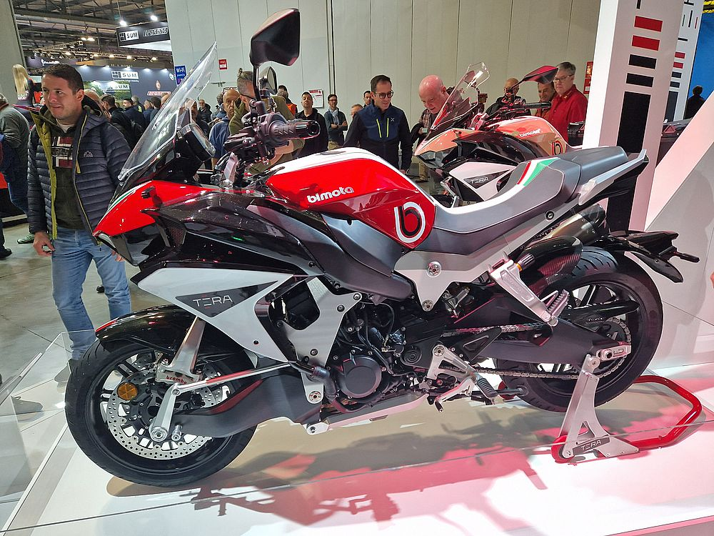 Auch die Edelschmieden leben noch. Blick auf Bimota und immer noch zeitlos schön. Da steht jetzt eine „Enduro“, die auf den Namen Tera hört mit 200 PS. Achsschenkellenkung von der Tesi und der Motor von der Kawasaki H 2. Im Vergleich zu dem Apparat ist jeder Sternenzerstörer der Klingonen untermotorisiert.