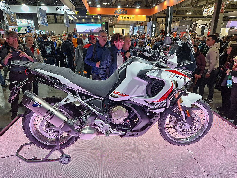 Was noch am Stand war. Eine Dreizylinder Enduro mit 124 PS und einer Aufmachung wie die alte Cagiva Enduro mit der Eddy Orioli die Paris-Dakar gewann. MV und Enduro? Wahrscheinlich dreht sich der alte Conte Agusta gerade im Grab um, aber der Markt wird es sicherlich annehmen.