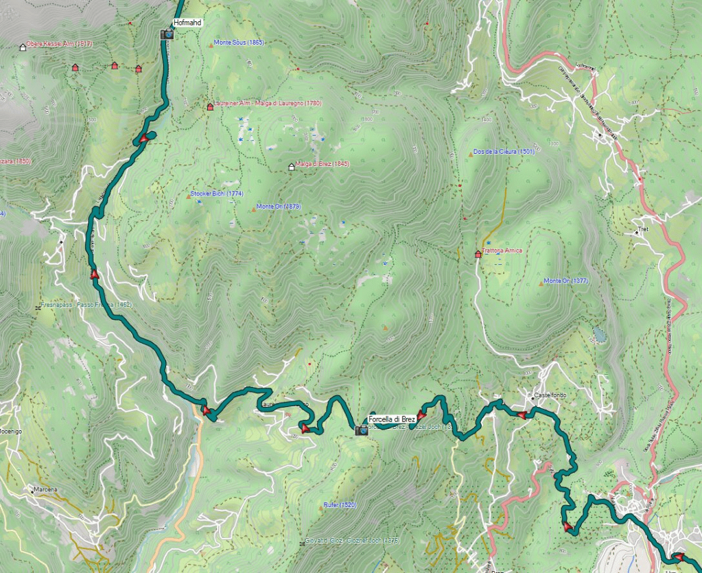 Die Forcella di Brez und die Hofmahd sind heute unsere Zwischenstationen hinein ins Ultental und dann abwärts nach Lana.