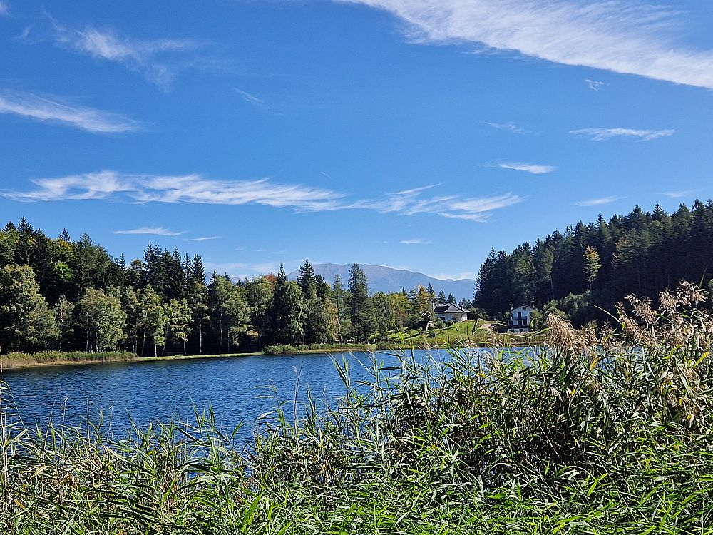 667 m liegt Cembra über dem Meeresspiegel. Wir wollen jetzt noch schnell hoch auf etwa 1.200 m und den Lago di Santo besuchen. Wie man sich denken kann leitet sich der Name des kleinen Sees von einer Legende ab. Irgendwie kommen meine Erinnerungen an den „Lec de Ergobando“, an den Regenbogensee oder auch Karersee, wieder hoch und seine Geschichte von der Wasserfee und dem hinterhältigen Zauberer. Ich liebe einfach diese schönen alten Geschichten, die einen so wunderbar in Gedanken träumen lassen.