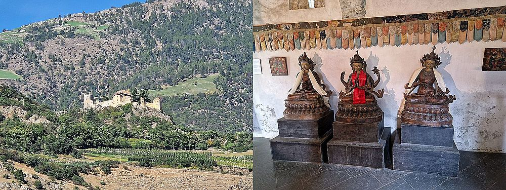 Oberhalb von Naturns blicken wir auf die Burg Hochnaturns. Wie fast immer im Vinschgau hatten die Grafen von Tirol ihre Hände mit im Spiel beim Bau im 12. und 13. Jahrhundert.