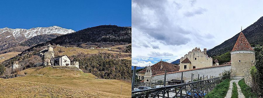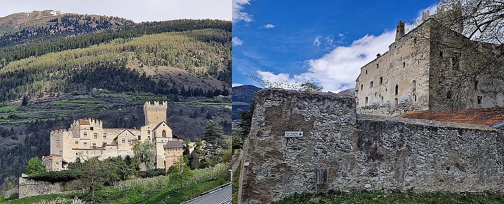 Oberhalb von Naturns blicken wir auf die Burg Hochnaturns. Wie fast immer im Vinschgau hatten die Grafen von Tirol ihre Hände mit im Spiel beim Bau im 12. und 13. Jahrhundert.