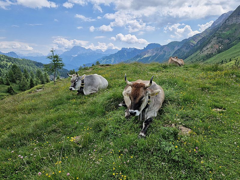 Eine kleine pittoreske Kapelle auf der Anhöhe. Kühe auf der Almwiese mit Glockengeläut und ein wunderbarer Blick in die Ferne. Der Passo Valles liegt im Nationalpark Paneveggio. 2003 war der Valles Bestandteil einer Bergetappe des Giro d`Italia. Damals ging es vom Rolle über den Valles zum San Pellegrino mit der tollen Abfahrt hinab nach Moena.