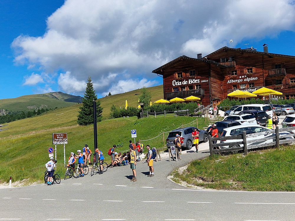 Insbesondere in dem Streckenabschnitt von der Passhöhe hinunter in Richtung Villnösstal. Auf der Passhöhe machen wir die üblichen Fotos, legen aber hier keine größere Pause ein.
