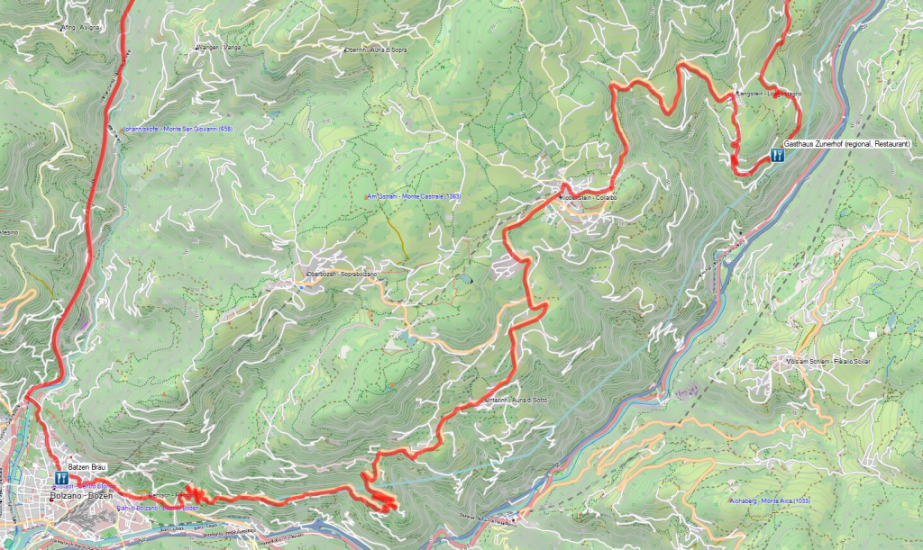 Irgendwann rollen wir dann auf unserem kleinen „Abstecher“ wieder zurück auf unsere Strecke in Richtung Lengmoos und Ritten, wo die Bozener bei sommerlicher Hitze ihre Sommerfrische verbringen.