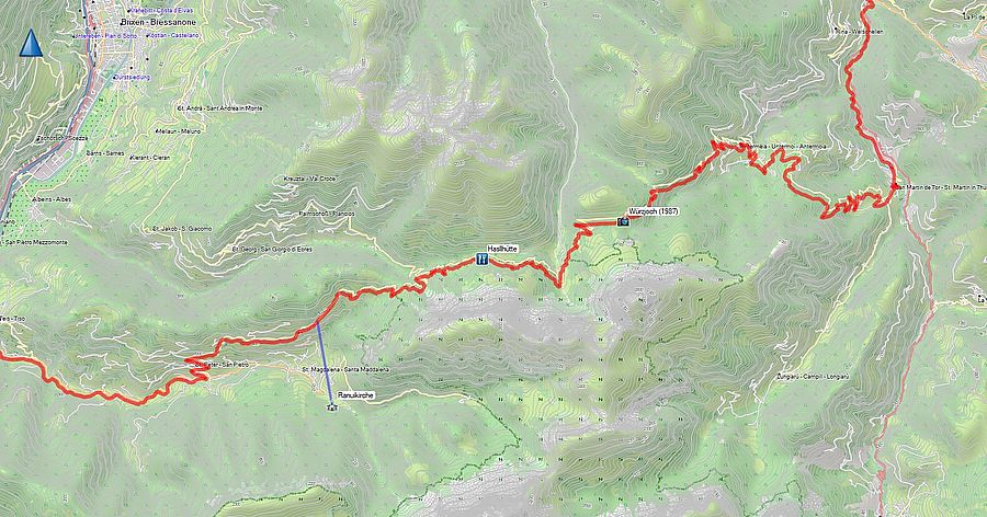 Dann geht es für uns weiter ins Eisacktal, an Klausen vorbei und dann bei Waidbruck wieder hinauf auf die Höhe, grobe Richtung Rittner Horn.