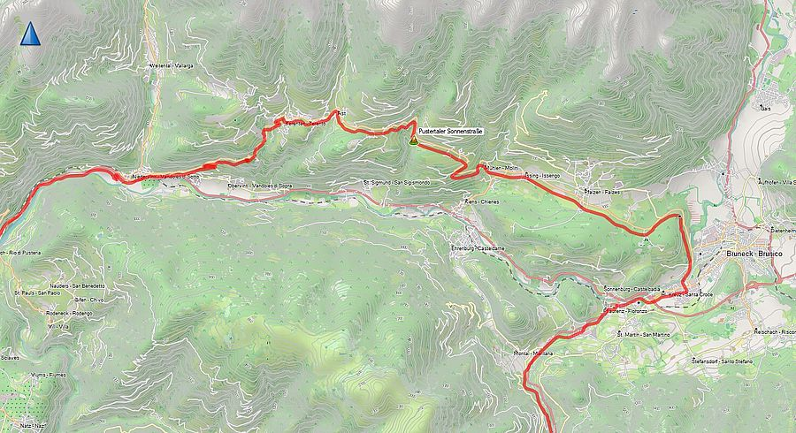 Unser Runde führt uns nun ins Pustertal. Aber nicht auf der SS 49, welche die Region mit Osttirol im angrenzenden Österreich verbindet. Das ist die Haupttransferroute und meistens hoffnungslos überlastet. Braucht kein Mensch.