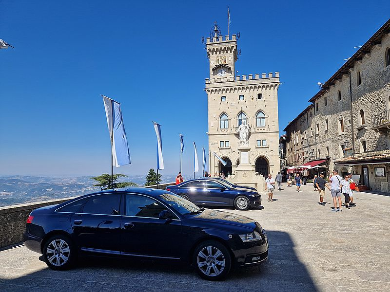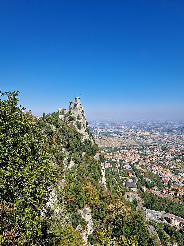 Auf geht es zu einer der ältesten Republiken der Welt, die hoch oben auf dem Monte Titano zwischen den Marken und der Emilia-Romagna liegt. Seit mehr als 1.700 Jahren verteidigt der Zwergstaat seine Unabhängigkeit. Das allein ist schon alle Achtung wert. Zeugt von ausgeprägtem diplomatischem Geschick der Einwohner.