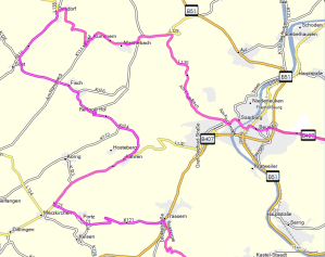 Also raus aus Trier über die Höhenstadtteile und über das Gusterather Tal, Pluwig, Ollmuth nach Lampaden, sowie über Hentern nach Zerf.