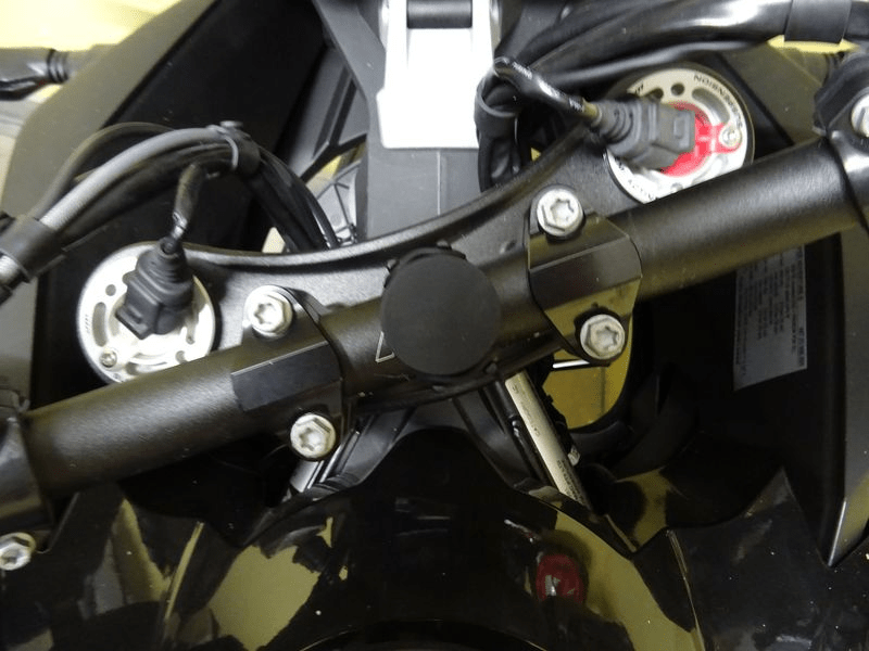 Befestigt wird er nach alter Väter Sitte mit einem Riemen, der um den Lenkkopf gelegt wird. Die seitlichen ROK Straps, stufenlose Spanngurte, werden über den Rahmen befestigt und „auf Zug“ abgespannt.