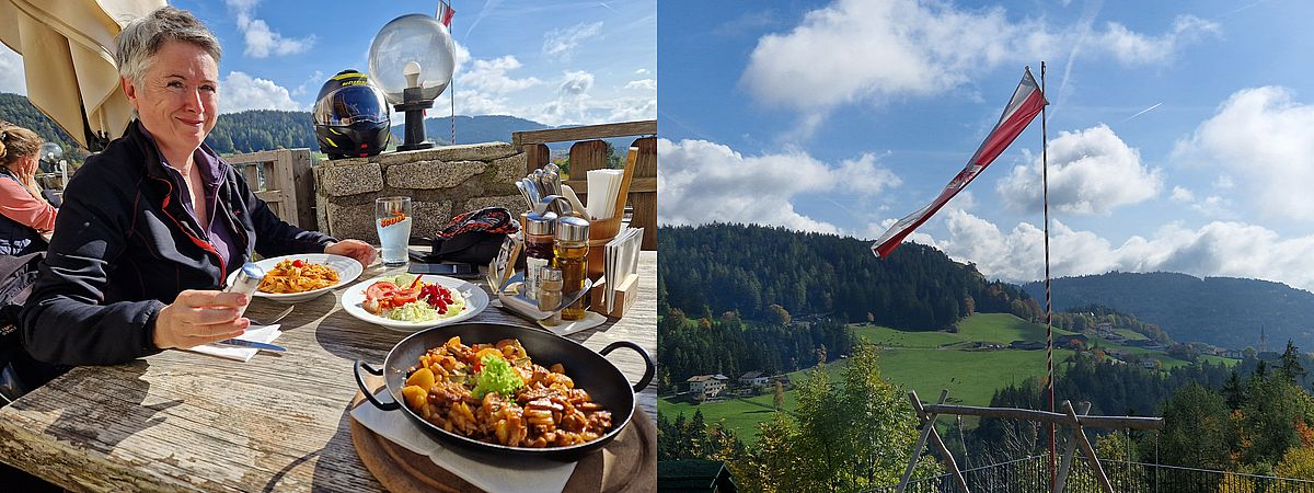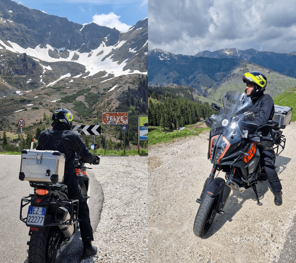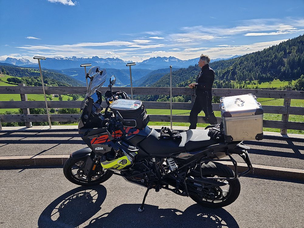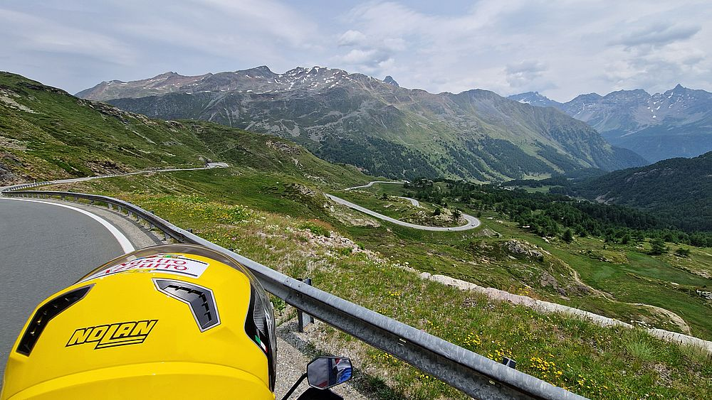 Dosiert fahren wir den Berg hinauf, denn es ist wirklich an einigen Stellen ziemlich eng und bei Gegenverkehr sollte man die nötige Toleranz an den Tag legen und chirurgische Präzision, wenn die Tourenkoffer keine Erinnerungsspuren davontragen sollen. Italiener erledigen dies mit einer entspannten Gelassenheit und Mimik.