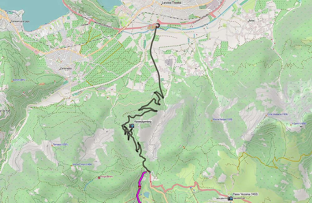 Heute begegnet uns wieder so ein Name, wenn wir uns von Levico Terme kommend den Monte Pegolara hinauf schlängeln. Die „Kaiserjägerstraße“.
