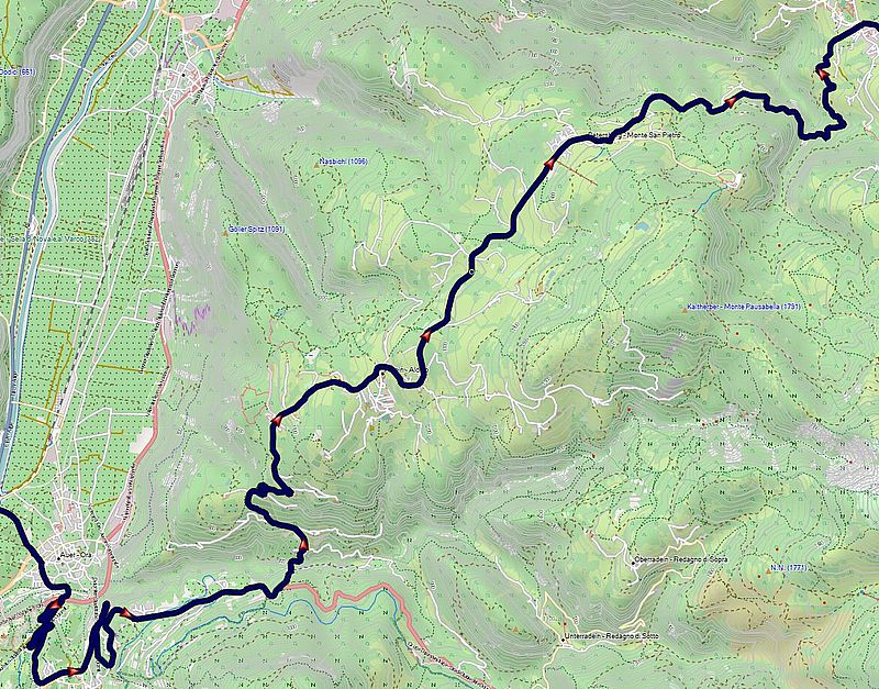 Der Weinanbau wird hier an den Hängen rund um Cembra im Terrassenanbau betrieben. Abgestützt und gesichert mittels Trockenmauern. Es erinnert mich irgendwie an unsere alte Heimat und den Weinanbau im Moseltal. Hier hatten die Steilhänge an der Mosel auch die Winzer vor Probleme gestellt.