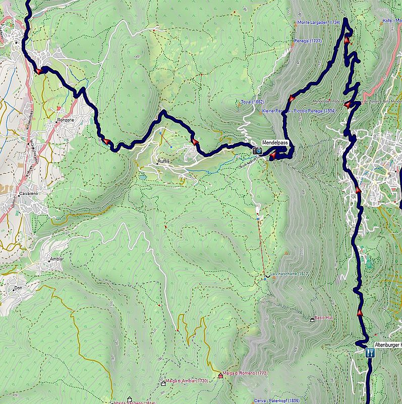Gerade zu den Wochenenden wird die Route im Cembratal gerne von den regionalen Motorradfahrern*innen genutzt. Eine wunderbare Einstimmung auf dem Weg zu den Dolomitenpässen oder den nahen Pässen wie Manghen, Rolle, Valles und wie sie alle heißen.