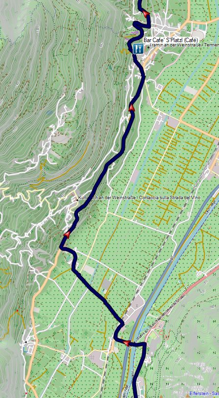 Der Weinanbau wird hier an den Hängen rund um Cembra im Terrassenanbau betrieben. Abgestützt und gesichert mittels Trockenmauern. Es erinnert mich irgendwie an unsere alte Heimat und den Weinanbau im Moseltal. Hier hatten die Steilhänge an der Mosel auch die Winzer vor Probleme gestellt.