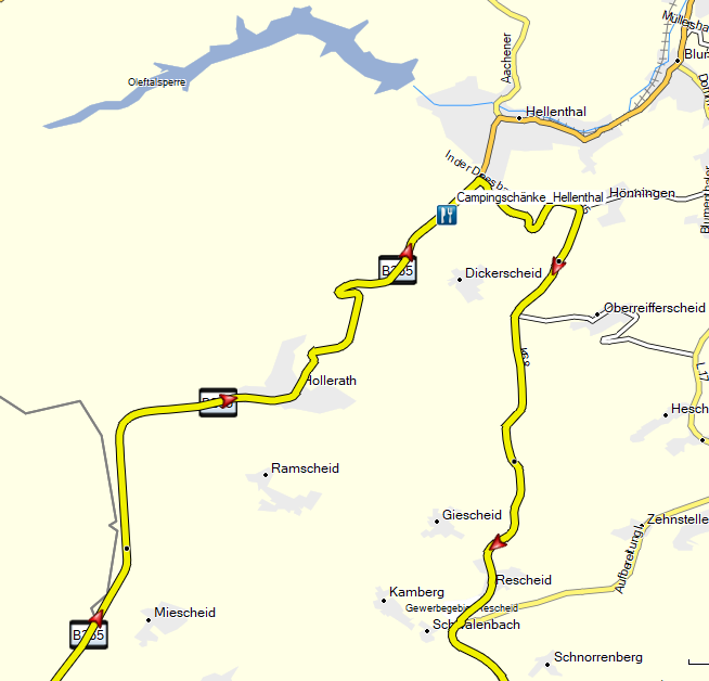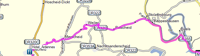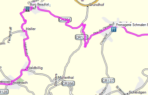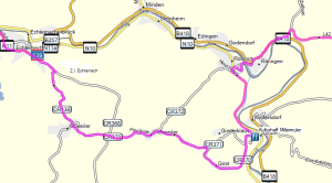 Höhepunkt in Wittlich ist alljährlich die sogenannte „Säubrennerkirmes“, welche immer am 3. Augustwochenende eines Jahres ausgetragen wird. Ansonsten ist die Stadt Wittlich jetzt kein Ort der uns zum längeren Verweilen einlädt und so suchen wir auch auf kürzestem Weg wieder den Ortsausgang in Richtung des Krankenhauses der Stadt (L 52; Hasborn). Stopp, da gibt es doch noch einen einzigen Grund den Aufenthalt in Wittlich zu verlängern. Falls die Maschinen bei Abfahrt nicht vollgetankt waren ist hier ein gute Möglichkeit Sprit für die Tagestour zu fassen. Aber jetzt suchen wir schnell das Weite in Richtung Hasborn und fahren nach einem kurvenreichen, leicht ansteigenden Streckenabschnitt vom „Krankenhaus Wittlich“ bis Hasborn, hinter dem Ort nach Oberscheidweiler. Alles auf der L 52 obwohl sich hinter Hasborn unser Weg gegabelt hat und wir die Route nach rechts gewechselt haben.