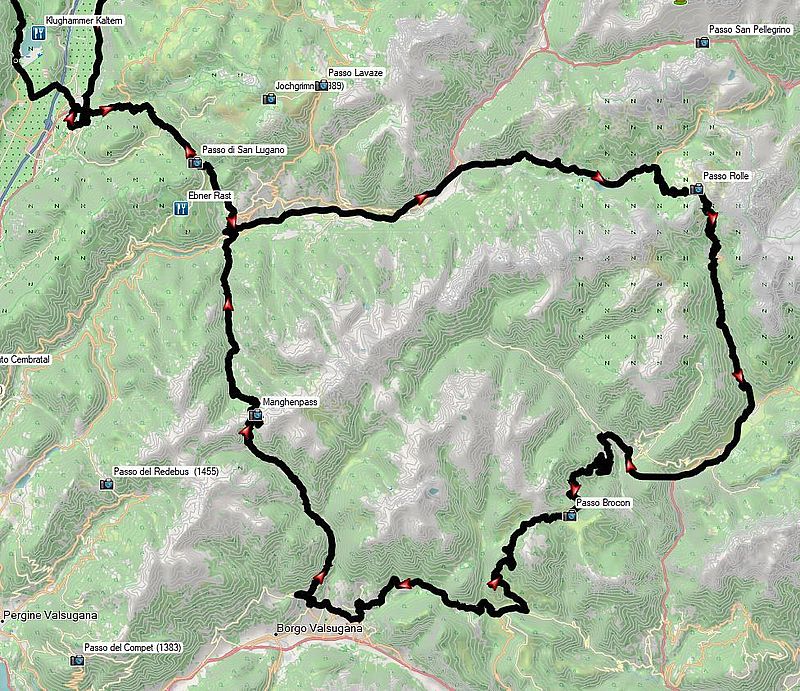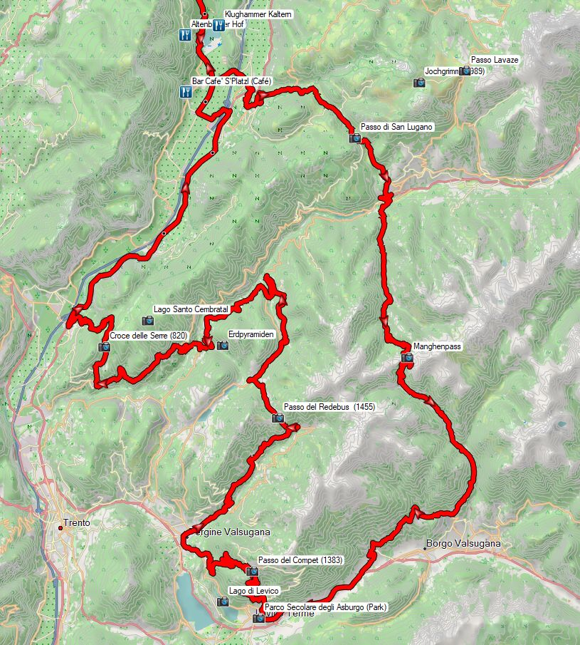 Dann geht es weiter in Richtung von alten Bekannten. Die Route im Cembratal noch in Erinnerung? Grob geht es wieder in die Richtung, zumindest zum namensgebenden Ort Cembra.