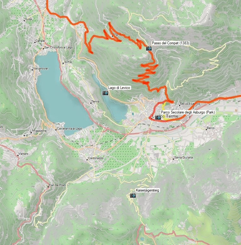Jetzt geht es entweder für uns am Lago di Levico vorbei oder wir nehmen die kurvige Variante über den kleinen Passo del Compet. Der ist irgendwie genauso unauffällig wie der Passo San Lugano, aber man kann ihn „mitnehmen“, wenn man schon mal da ist.