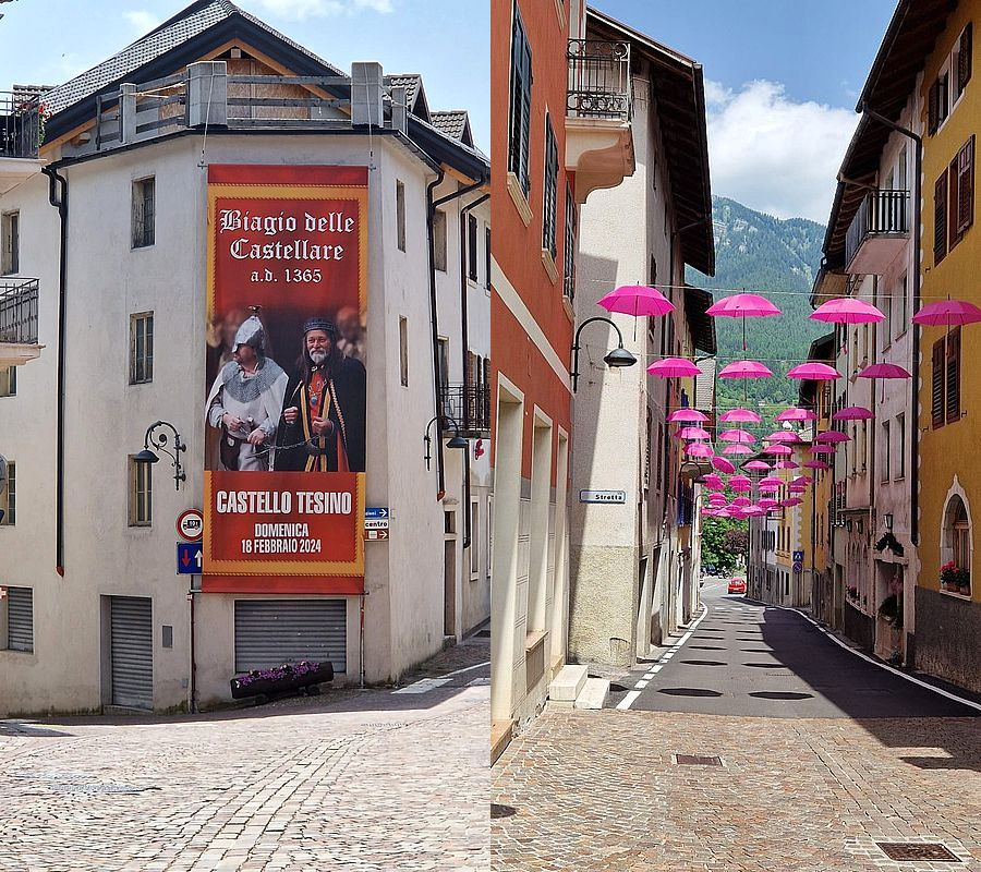 Die anderen folgen ab Casino Tesino der Routenführung über den Passo della Forcella. Kann man machen und dabei wieder einmal die Ruhe genießen. In Castello Tesino schmunzeln wir etwas über die rosa Schirmchen-Dekoration im Stadtbild. Aber selbst das versprüht hier einen gewissen Charme.