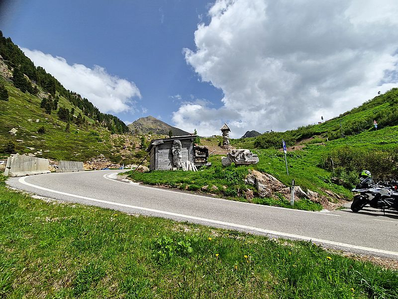 Die fehlende „Warmverpflegung“ ist locker zu verschmerzen, denn dafür sind die Auffahrten in die Berge nahezu „verkehrsfrei“ und Genuss pur. Der Manghenpass ist einer unserer Favoriten und zu dieser Zeit landschaftlich und fahrerisch unbezahlbar.