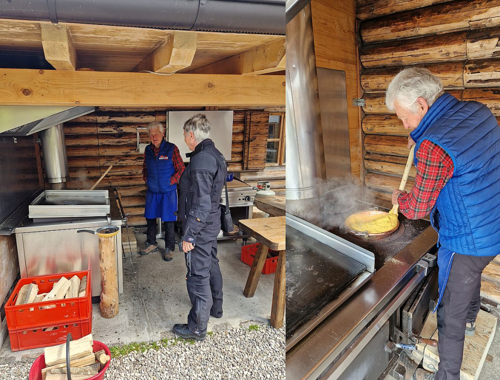 Da wird die Polenta, die zu einigen der Speisen als Beilage gereicht wird, auf einem Ofen täglich frisch zubereitet. Der stolze Koch erklärte der besten Sozia von Allen (und natürlich auch der besten Köchin von allen), wie er die Polenta „mindestens 1 Stunde rührend“ auf dem Ofen im Messingtopf zubereitet. Weltklasse!