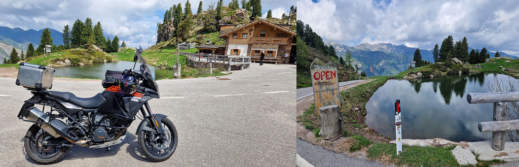 Kurz vor der 2.042 m hohen Passhöhe liegt der idyllische Lago Cadinello und eine kleine Einkehrmöglichkeit zur Stärkung finden wir natürlich auch noch.