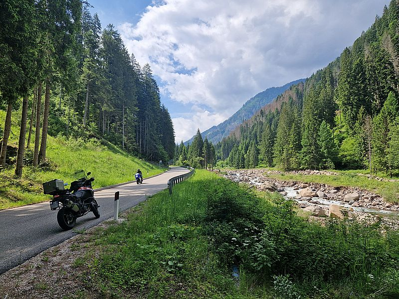 Für die italienschen Motorradfahrer*innen, die aus dem Süden kommen ist der Manghenpass das Tor zu den Dolomiten und seinen bekannten Strecken.