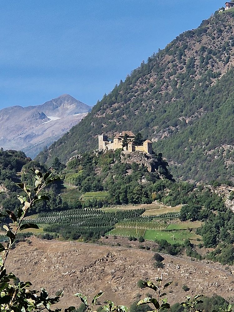 Also genießen wir zunächst bei unserer Anfahrt, vom Ausgangsort Schlanders aus, die Bergkulisse zur rechten und zur linken auf unserem Weg in Richtung Meran.