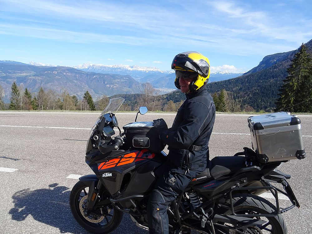 Es geht für uns hinauf auf den San-Lugano-Sattel, der das Unterland Südtirols mit dem Fleimstal, also Trentino verbindet. Von seiner Westrampe hat man einen wunderschönen Blick hinein ins Etschtal. Seine 1.097 m hohe Spitze waren schon mehrfach für uns Anlaufpunkt, respektive Zwischenstation. Der San Lugano ist die ideale Transferstrecke, wenn man in Richtung San Pellegrino, Lavaze oder auch Manghenpass möchte. Wir sind hier auf der Strada delle Dolomiti.
