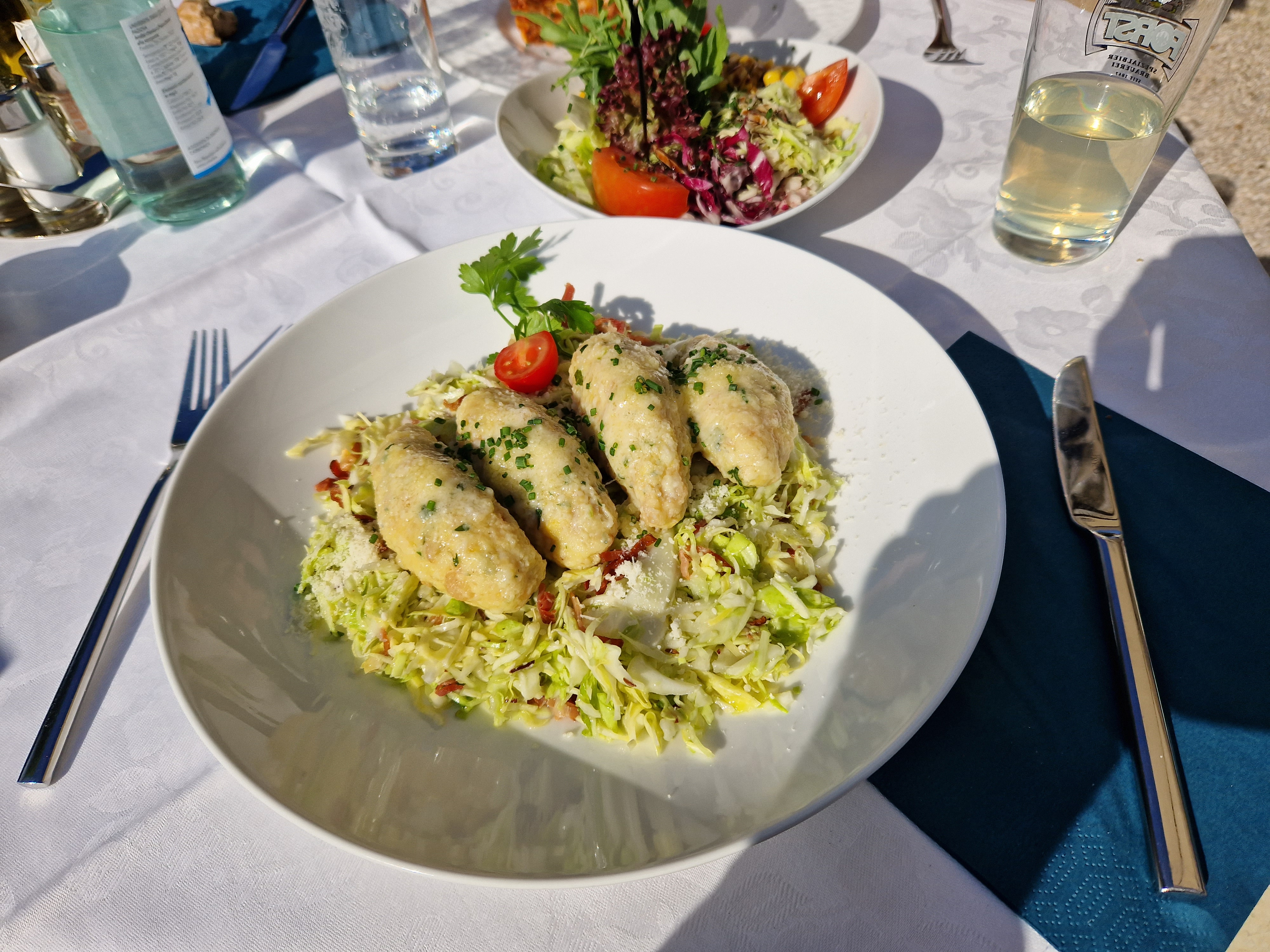 Pasta ist fein, die Knödel ebenfalls und der anschließende Espresso hilft wieder die erforderlichen körperlichen Ressourcen für den Heimweg aus dem Magen- / Darmtrakt in das „Hirn“ zu lotsen.
