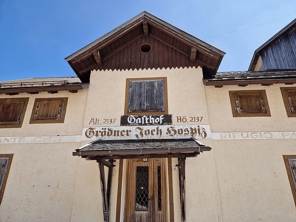 Also jetzt hinauf zu unserem nächsten Protagonisten der heutigen Runde zum Grödner Joch auf 2.121 m Höhe. Die Einheimischen hier in dieser Region und im Grödnertal weiter bergabwärts, gehören der ladinischen Sprachgruppe in Südtirol an. Die Sprache hat etwas Melodisches und ich höre den Menschen hier gerne zu. Egal was besprochen wird – es hört sich immer unaufgeregt und freundlich an.